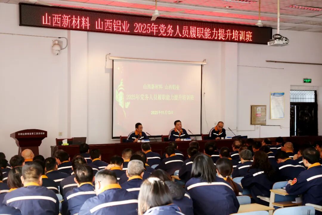 為進(jìn)一步提升黨務(wù)人員業(yè)務(wù)能力和專業(yè)素養(yǎng),11月13日,中鋁山西新材料、中鋁山西鋁業(yè)2025年黨務(wù)人員履職能力提升培訓(xùn)班開班。中鋁山西新材料黨委書記、董事長,中鋁山西鋁業(yè)執(zhí)行董事王辛成出席開班式并講話,各二級(jí)黨組織書記、政工負(fù)責(zé)人、政工員及基層黨支部書記共160人參訓(xùn)。